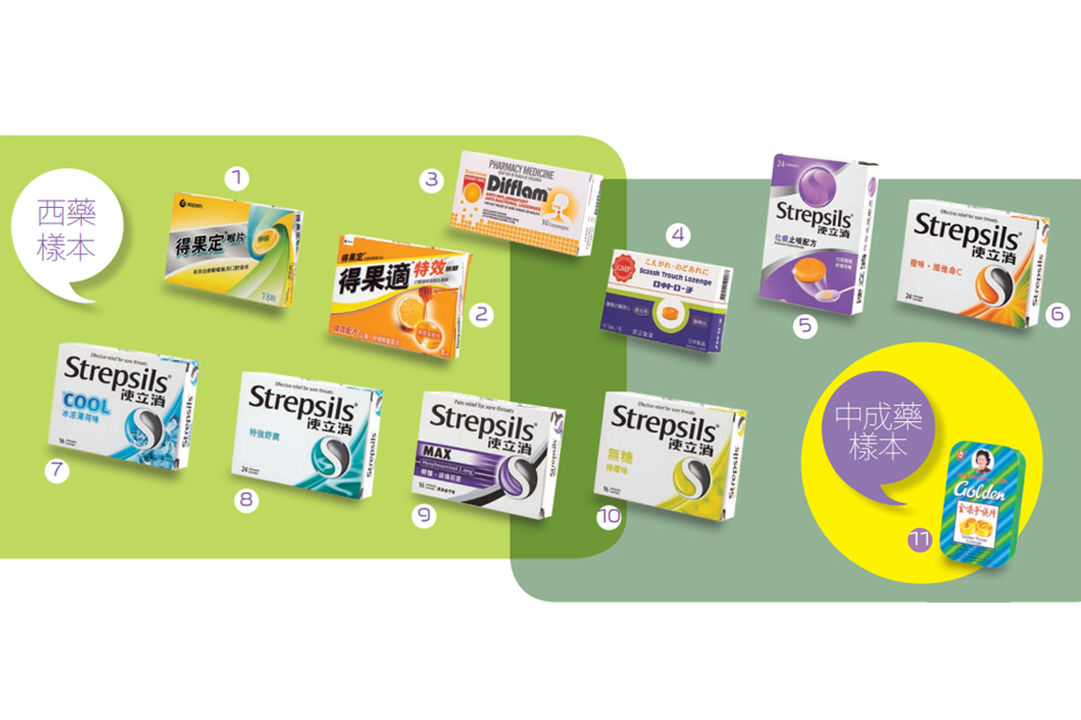 10 款為註冊西藥的喉糖樣本,9 款含治療口腔或喉嚨感染的消毒殺菌成分,包括季銨化合物、2,4-二氯苄醇及戊間甲酚。當中 1 款每粒含 0.25 毫克地喹氯銨的樣本,沒有列明每日服用上限,參考英國一些含有該成分的藥物標籤例子,服用劑量為每日最多 2 毫克,即每日最多只可服用該樣本 8 粒,若消費者過量服用,便有機會出現舌頭或口腔痛;有專家認為 6 歲甚或 10 歲以下的兒童不應服用地喹氯銨。