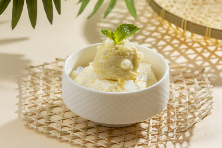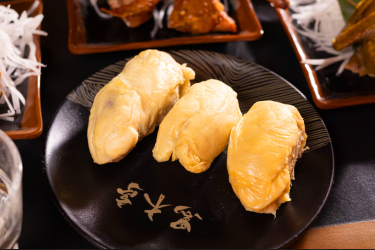 每位成人享用下午茶可獲贈精選榴槤果肉兩件,獨享齒頰留香。精選榴槤款式因應貨源每日更替,精選品種包括濃烈回甘的D197貓山皇、醇厚不膩的D24蘇丹王及清甜柔潤的D175紅蝦。
