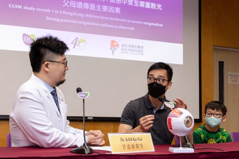 中大醫學院眼科及視覺科學學系研究團隊從其「香港兒童眼科計劃」中收集3,704名學童及5,577位成年人的數據進行散光研究分析。「香港兒童眼科計劃」是學系由2015年開始的研究計劃,經全港小學轉介6至8歲學童,為他們提供免費的全面眼科檢查,從而了解本港學童的眼睛健康狀況。是次研究主要探討本港學童及成人患散光的比率,並分析不同散光種類以及其關聯,當中包括屈光散光和角膜散光。結果顯示,本港學童患屈光散光及角膜散光的比率較其他城市高,分別為21.9%及63.9%。團隊亦證實近視度數會影響散光度數的增減。
